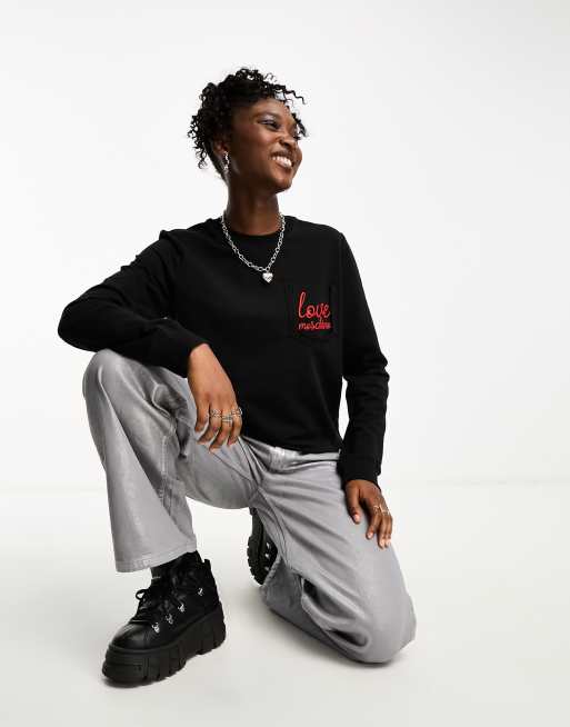 Love Moschino – Sweatshirt in Schwarz mit kursivem Logo