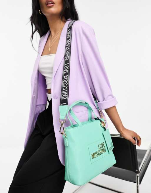 Love Moschino – Tragetasche in Minzgrün mit Logo und Etikettanhänger