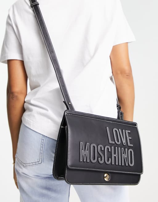 Love Moschino – Umhängetasche in Schwarz mit farblich abgestimmtem Logo und schmalem Umschlag
