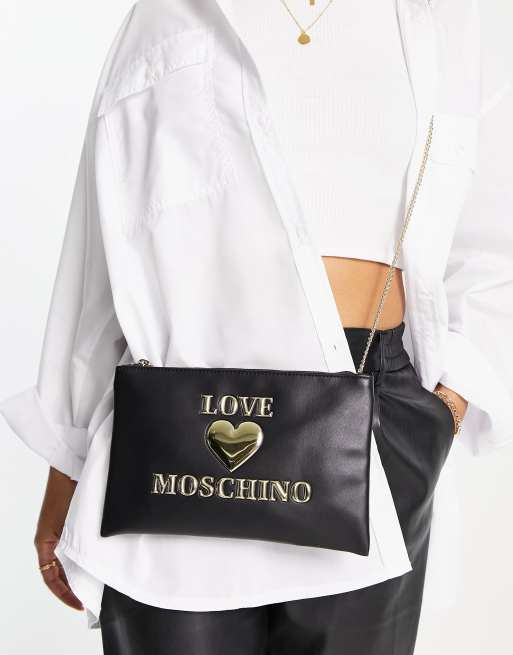 Love Moschino – Umhängetasche in Schwarz mit Herz-Logo und Reißverschluss oben