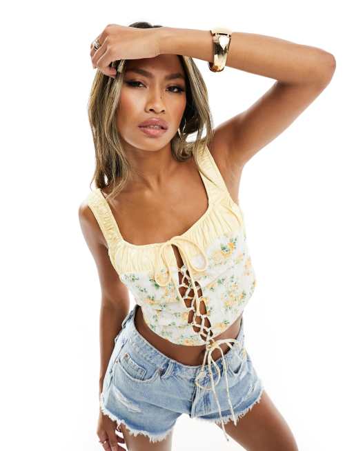 Love Triangle – Geschnürtes Korsett-Oberteil in Gelb