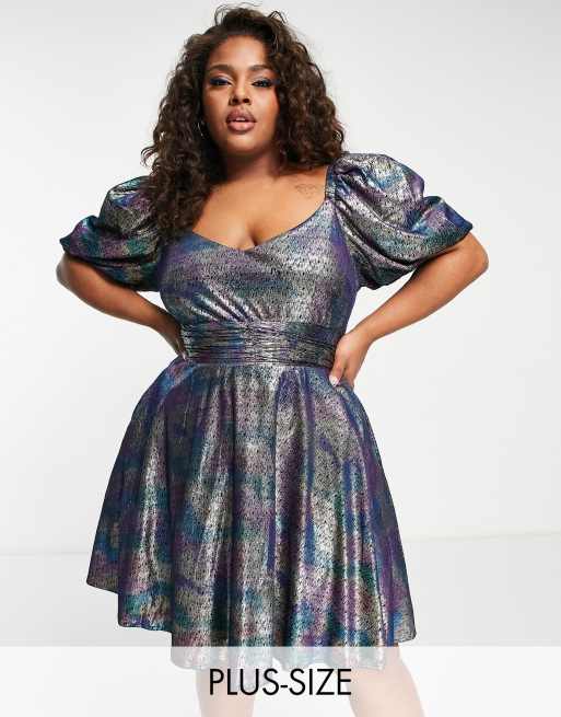 Lovedrobe Luxe Plus – Minikleid aus Verlours mit Ölmuster und Rückenschleife