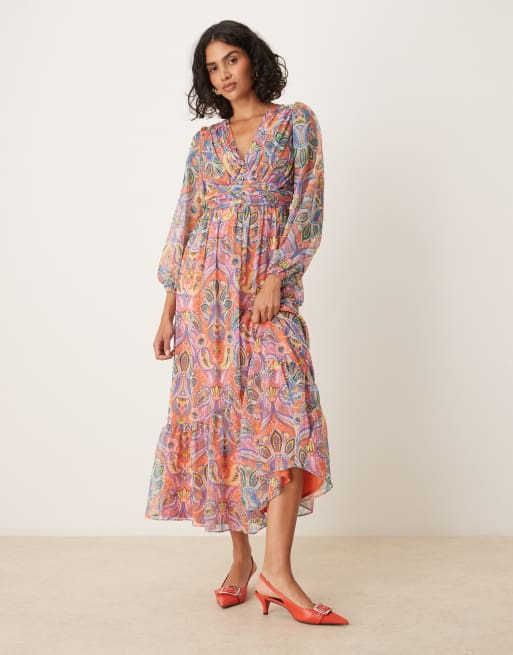 Lovedrobe – Langärmliges Midaxi-Kleid mit buntem Paisleymuster und V-Ausschnitt