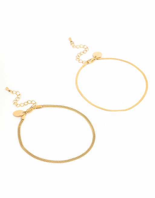 Lovisa – 2er-Pack vergoldete Fußkettchen aus wasserfestem Edelstahl mit verschiedenen Schlangenketten-Designs in Goldoptik