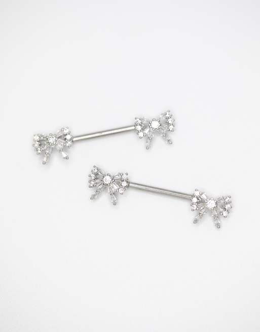 Lovisa – Brustpiercings aus chirurgischem Stahl mit doppelter Zirkonia-Schleife – 2-er-Pack in Silberoptik