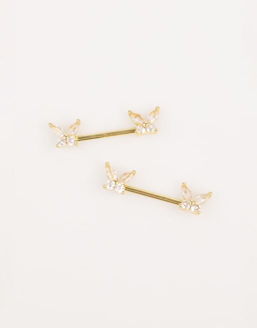 Lovisa – Brustpiercings aus goldplattiertem Chirurgenstahl mit Zirkoniasteinen – 2-er-Set