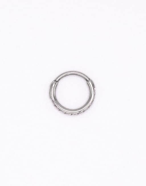 Lovisa – Einfacher, silberfarbener Clicker-Ring aus Titan mit Zirkoniasteinen, 6 mm