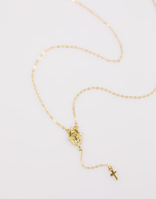 Lovisa – Goldfarbene Halskette aus vergoldetem Sterlingsilber mit Rosenkranz-Kreuzanhänger