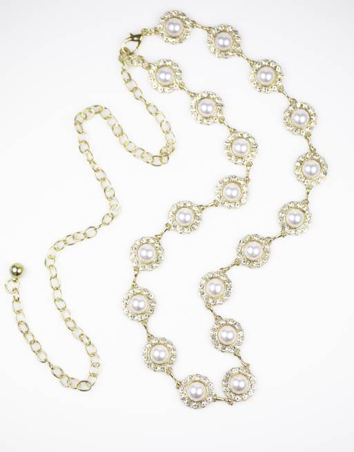Lovisa – Gürtel in Roségold und Gold mit Perlendetails und Strasssteinen