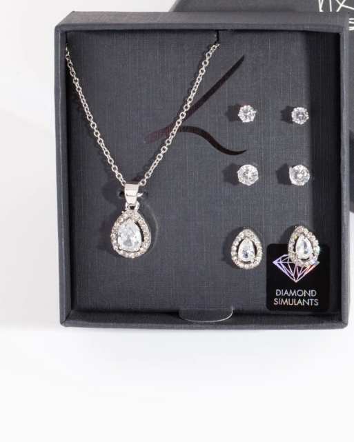 Lovisa – Set in Silberoptik, aus Halskette und Hängeohrringen mit birnenförmigen Anhängern aus Diamant-Imitaten