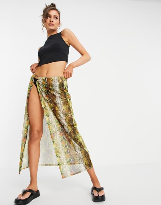 Luxe Palm – Maxirock aus Netzstoff mit Schlangenmuster