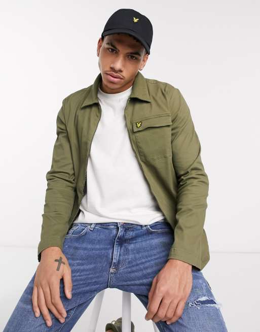 Lyle & Scott – Khaki Twill-Jacke mit durchgehendem Reißverschluss