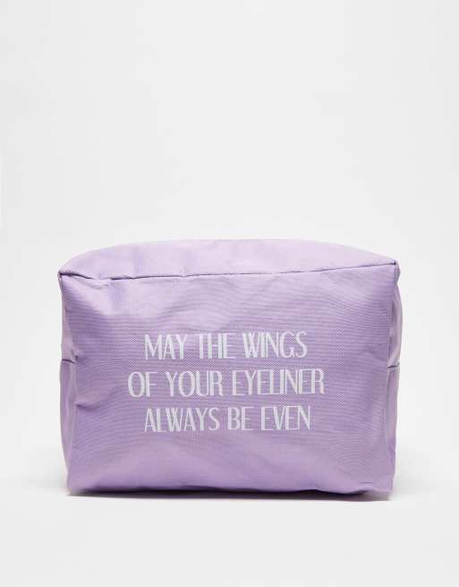 Madein. – Eckige Kosmetiktasche in Flieder mit Slogan