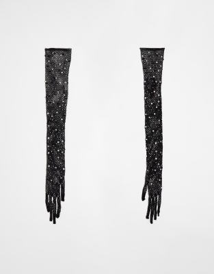 Madein. – Lange Handschuhe in Schwarz mit Strasssteinverzierung
