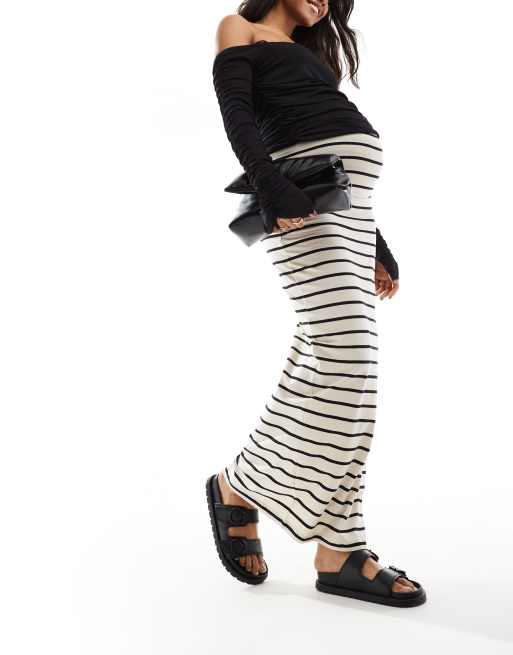 Mamalicious Maternity – Jersey-Maxirock in gestreiftem Cremeweiß mit Überbauchbund