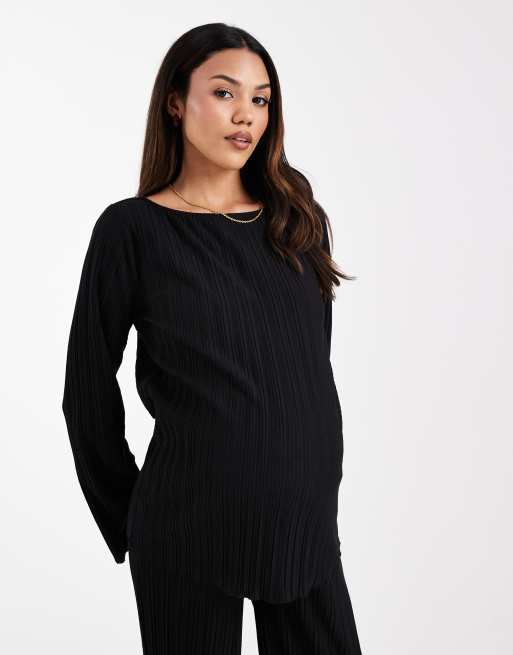 Mamalicious Maternity – Plissiertes, langärmliges Oberteil in Schwarz, Kombiteil