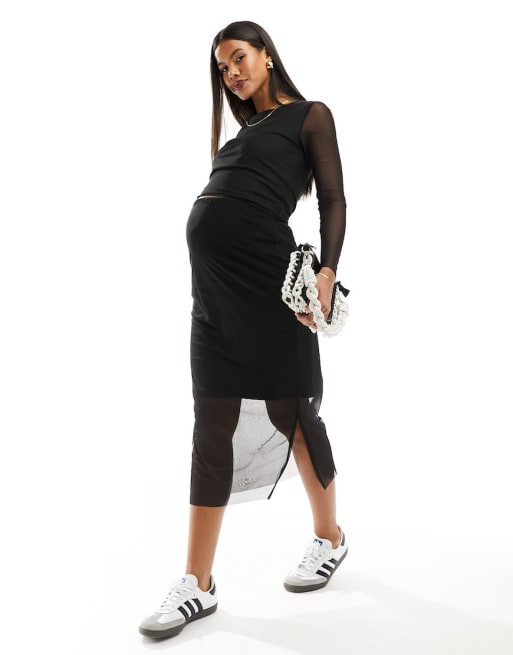 Mama.licious Maternity – Set mit langärmligem Oberteil und Midirock aus Netzstoff in Schwarz