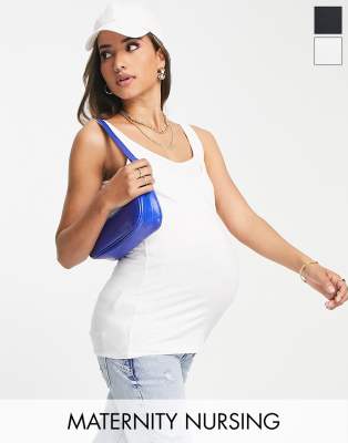 Mamalicious Maternity – Still-Oberteile in Schwarz und Weiß im 2er-Pack