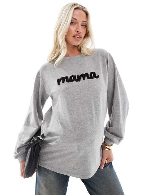 Mamalicious Maternity – Still-Sweatshirt in meliertem Grau mit „Mama“-Logoapplikation