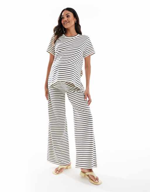 Mamalicious Maternity – Umstandshose aus Jersey in Cremeweiß und Marineblau gestreift mit weitem Schnitt, Kombiteil