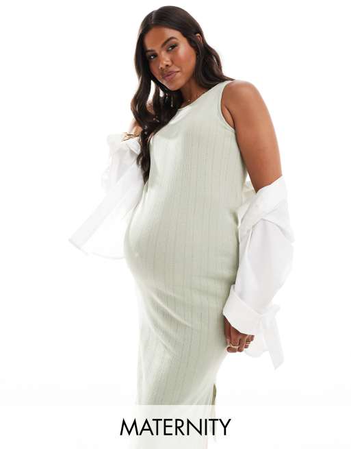 Mama.licious – Umstandsmode – Träger-Midikleid aus Pointelle-Jersey in Salbeigrün