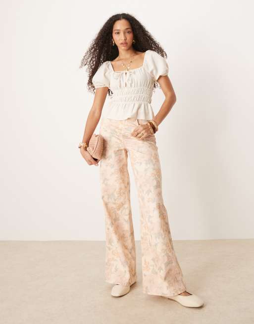 Mango – Aba – Jeans in Blassrosa mit verwaschenem Blumenmuster