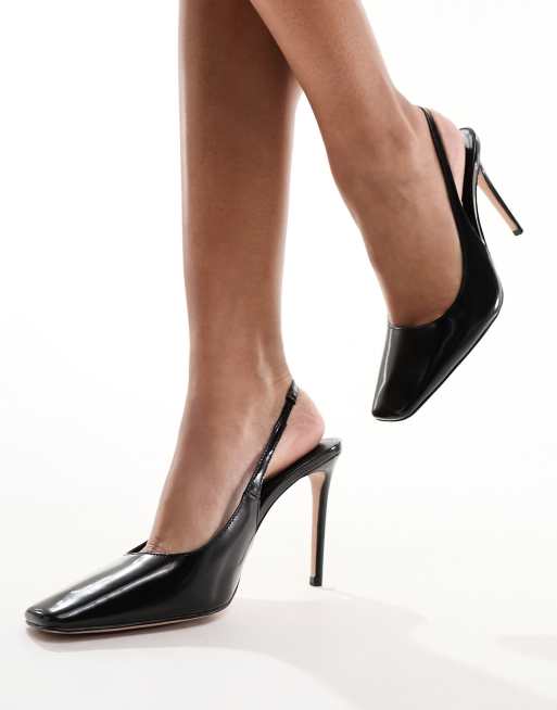 Mango – Absatzschuhe in Schwarz mit eckiger Zehenpartie und Fersenriemen