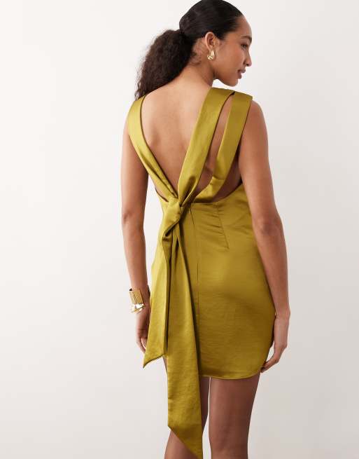 Mango – Ärmelloses, gerafftes Minikleid in Gelb
