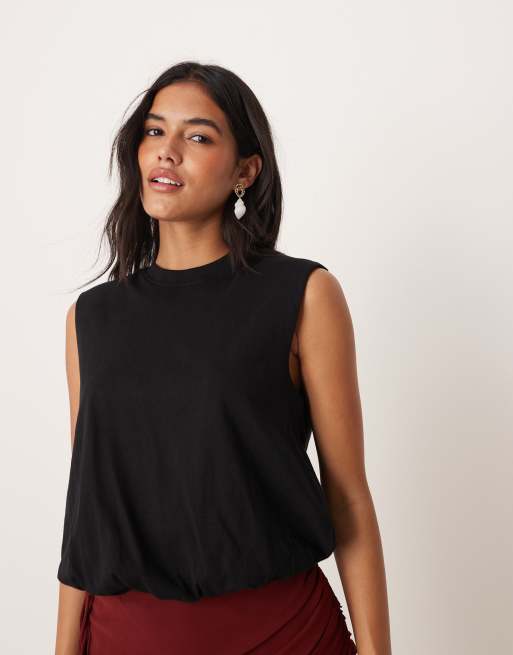 Mango – Ärmelloses Oberteil in Schwarz mit Ballonsaum