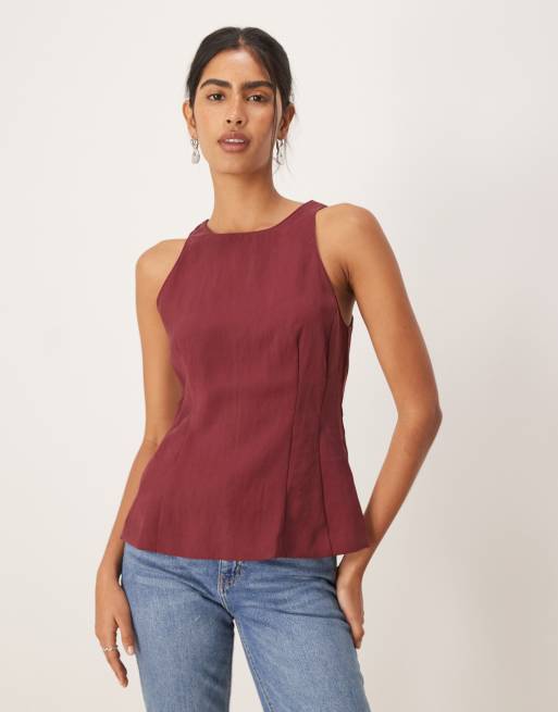 Mango – Ärmelloses, tailliertes Oberteil in Burgunderrot