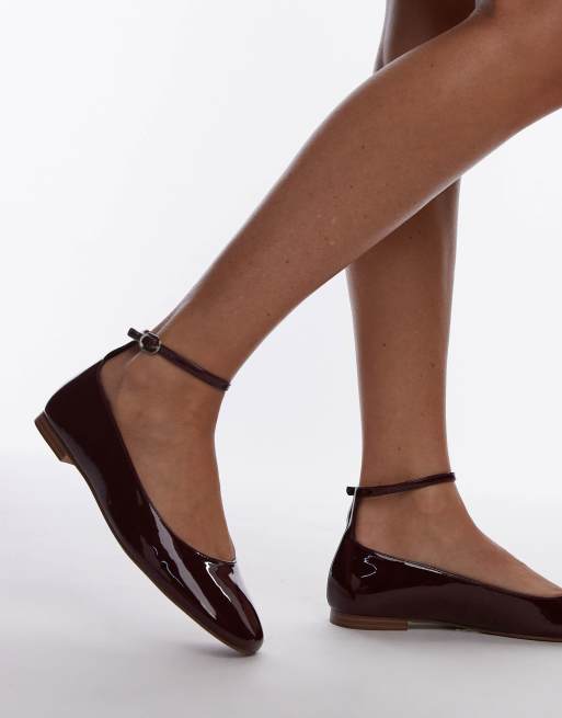 Mango – Ballerinas in Burgunderrot mit Knöchelriemchen