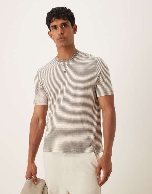 Mango – Braun gestreiftes T-Shirt aus Leinenmix