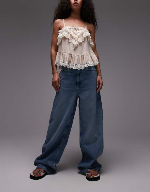 Mango – Camilla – Weite Relaxed-Fit-Jeans in Blau mit verwaschener Vorderseite