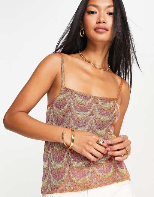 Mango – Camisole-Oberteil in Rot mit Glitzer-Muster