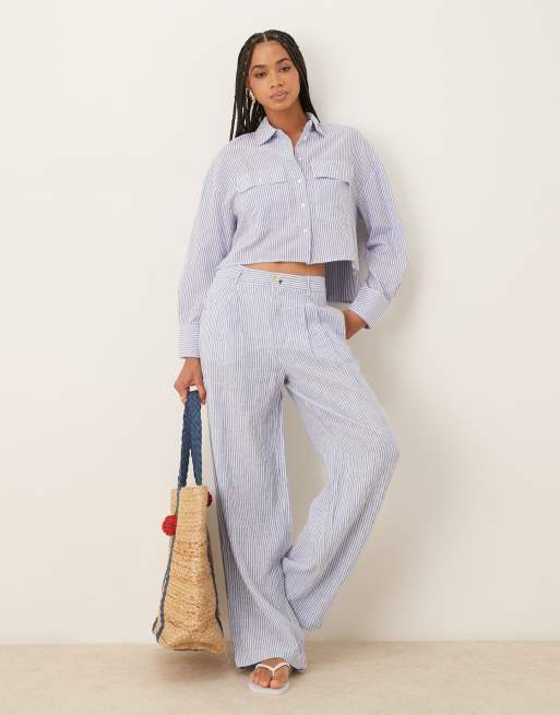 Mango – Cropped-Hemd aus Leinenmix in Hellblau gestreift, Kombiteil