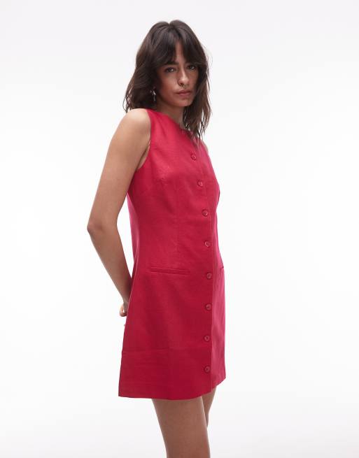 Mango – Durchgeknöpftes Leinenmix-Minikleid in Rot mit geradem Schnitt