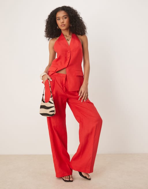 Mango – Elegante, gerade geschnittene Hose aus Leinen in Rot, Kombiteil