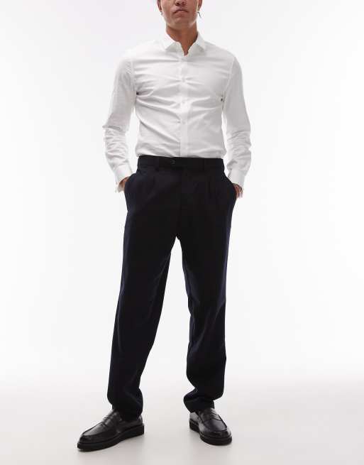 Mango – Elegante Hose aus Wollmix in Marineblau