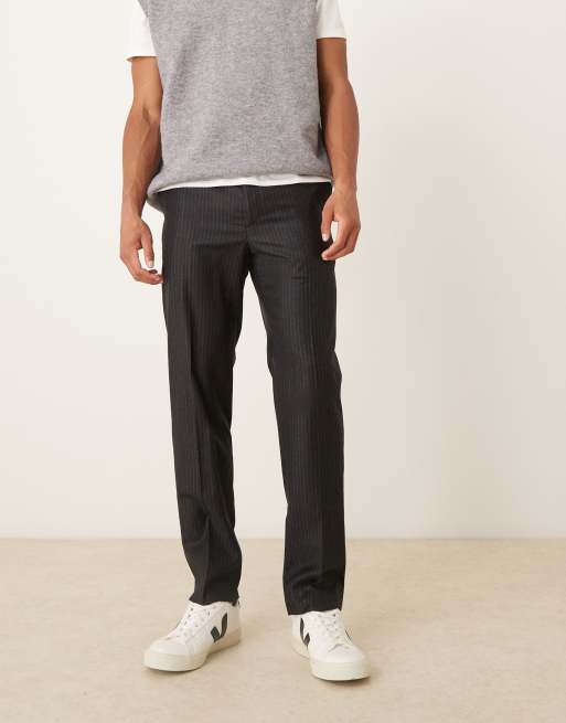 Mango – Elegante Nadelstreifenhose aus reiner Wolle in Anthrazit mit Bundfalten