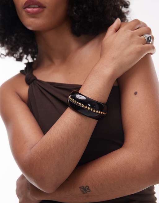 Mango featuring Kaia Gerber – Armreif in Schwarz mit goldfarbenen Nieten