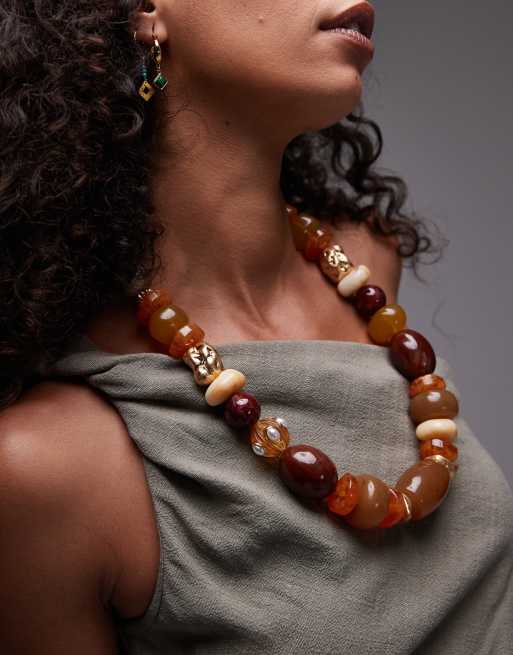 Mango featuring Kaia Gerber – Halskette in Braun mit Schmuckperlen