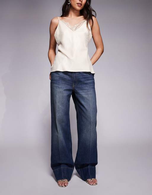 Mango featuring Kaia Gerber – Weite Jeans in Blau mit Umschlag