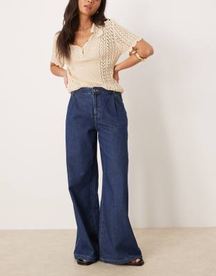 Mango – Gerade geschnittene, weiche fallende Jeans in Dunkelblau mit Falten vorne