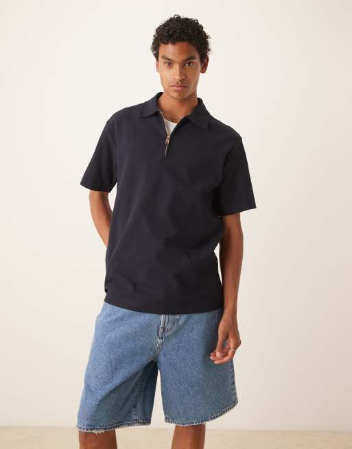 Mango – Gerade geschnittenes Polohemd in Marineblau mit kurzem Reißverschluss