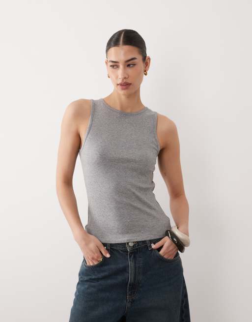Mango – Geripptes Trägertop in Grau mit Ringerrücken und hohem Baumwollanteil