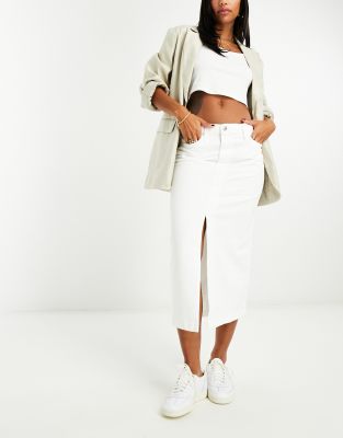 Mango – Geschlitzter Midirock in Weiß