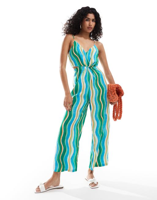 Mango – Gestreifter Camisole-Jumpsuit in Grün mit weitem Bein