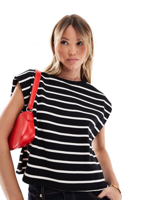 Mango – Gestreiftes Oberteil in Schwarz mit Schulterdetail