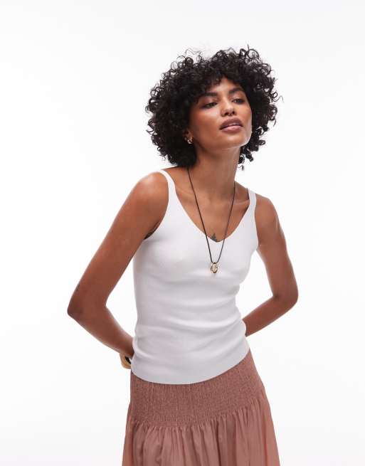 Mango – Gestricktes Trägertop in Weiß mit schmalen Trägern