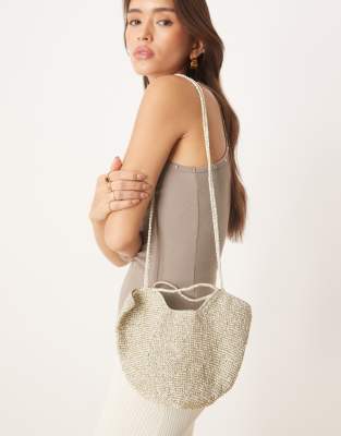 Mango – Häkel-Beuteltasche mit Metallic-Finish in Silber